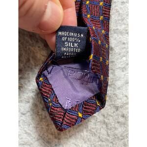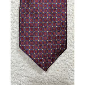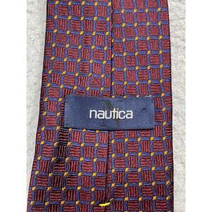 Vintage Nautica Silk Burgundy Blue Gold Patterned Necktie.