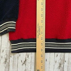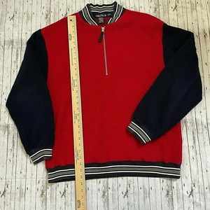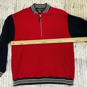 Vintage Nautica Sz M Red/Blue Varsity Spellout 1/4 Zip Sherpa Fleece Pullover