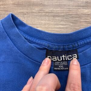 Vintage Y2K Nautica Blue Men's Size XXL Crewneck Graphic Big Logo Cotton T-Shirt short sleeve 100% cotton lightweight pullover casual preppy sporty made in USA