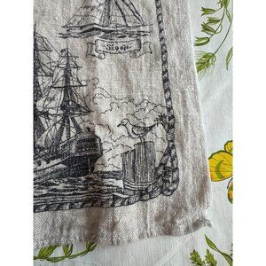 Vintage Nautical Ship Print Linen Tea Towel Rustic Maritime Design Ships