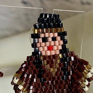 Vintage Navajo beaded post earrings featuring a beaded image of a Native American doll. Please see photos for details.