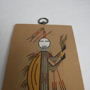 Vintage Navajo "Hunchback Medicine Man" Sand Art w/ Tribal Figure Design 12"x6"