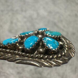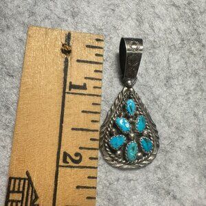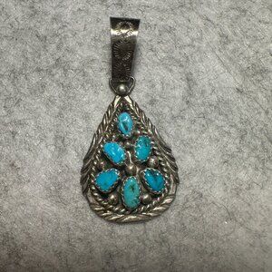 Vintage Navajo Native American Sterling Silver & Turquoise inlay cluster pendant