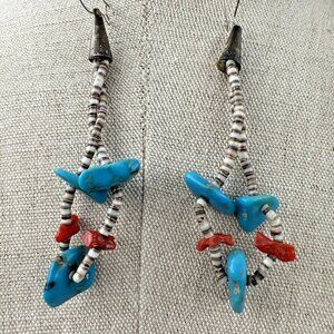 Vintage Navajo Necklace Earrings SET Turquoise Coral Nuggets & Shells 3 Strands