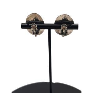 Vintage Navajo Sterling Kingman Pyrite Turquoise Artist Signed GD Clip Earrings