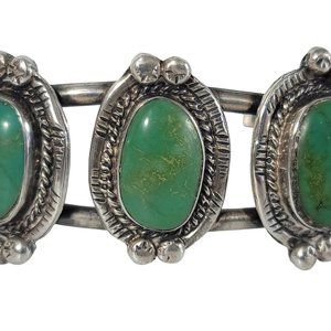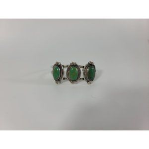 Vintage Navajo Sterling Silver & Green Turquoise Cuff Bracelet Signed 18g