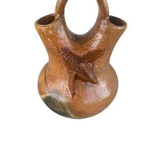 Vintage Navajo Traditional Handcrafted Wedding Vase Symbolizing Union Of Two With Corn Crafted Detail 6 1/4”