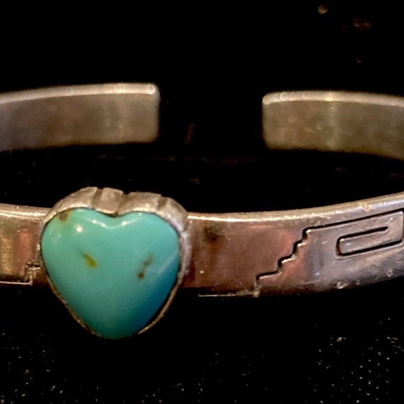Vintage Navajo bracelet silver and turquoise heart ❤️ valentines gift 🎁