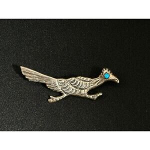 Vintage Navajo sterling silver roadrunner turquoise brooch