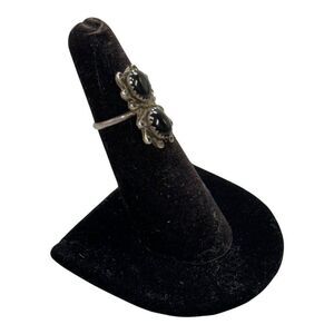 Vintage Navajo Sterling Silver Double Black Onyx Gemstone Statement Ring Size 5