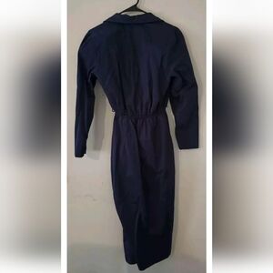 Vintage Navy 100% cotton Long Sleeve Dress Button Down With Pockets Size 4