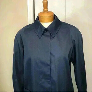 Vintage Brem Rainwear Button Up Jacket with Generous Sized front pockets Navy Blue Size 12 Petite. Fully lined and has hidden shoulder pads. Excellent condition!