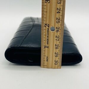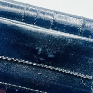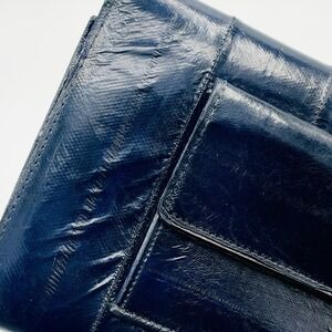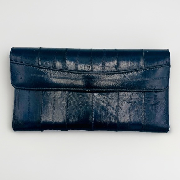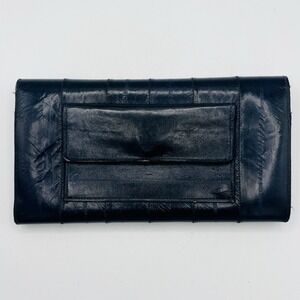Vintage Navy Blue Eel Skin TriFold Wallet Checkbook Cards Coins Korea
