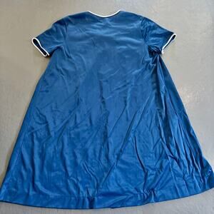 Vintage Navy Silky Embroidered Button-Down Nightgown Cap Sleeve M/L