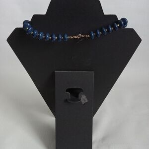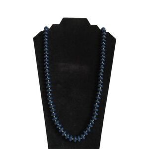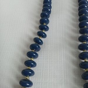 Vintage Navy Blue & Gold Toned Single Strand Round Alternating Beaded Necklace