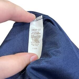 Vintage Navy Blue Nylon Half Slip Skirt Ribbon Double Lace Trim Size 10-12 Small