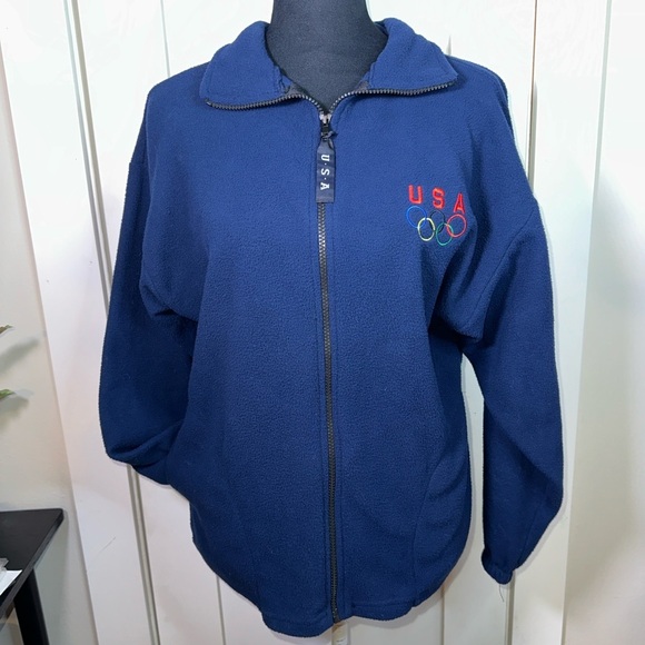 Vintage Navy Blue USA Olympic Embroidered Fleece Jacket