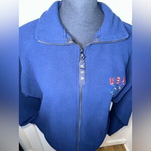 Cozy blue fleece jacket with USA Olympic embroidery. Features a full zip front.
