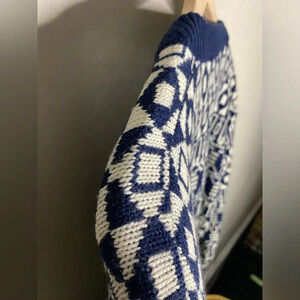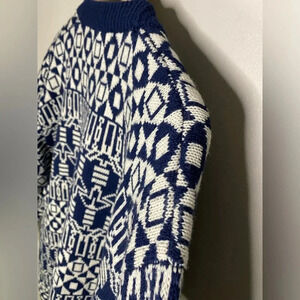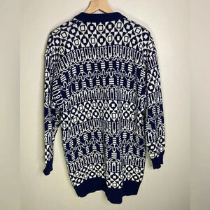 Vintage Navy Blue White Wool Blend Cardigan Sweater Size Large OUTLANDER