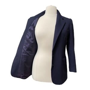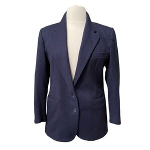 Vintage Navy Blue Wool 2 Button Blazer with Front Pockets by Michele Size: 12