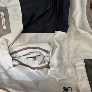 Preowned item in excellent overall condition. No odors, stains, or holes. Double headed front zip entry. All pockets functional. Vented back exterior. No hood. Sleeves zipper off to convert this into a vest.