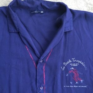 Soft woven 50% rayon / 50% poly size M shirt. Placement printing is somewhat worn off. Otherwise in great condition. Shoulders 19" Hem 43" More measures upon request.