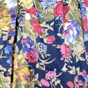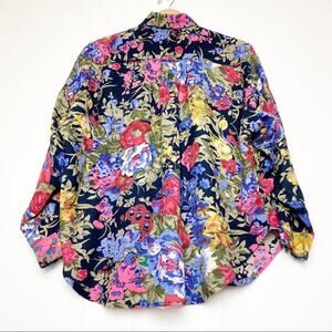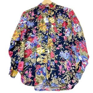 Vintage Navy Floral Full Sleeve Button Front Blouse Women’s Size Medium