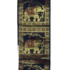 Vintage Navy & Gold Embroidered Elephant Wall Decor Tapestry Made in India