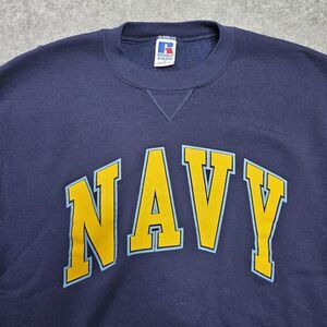 Vintage Navy Midshipmen Sweatshirt Mens Blue Yellow NCAA College Russell 90s