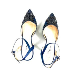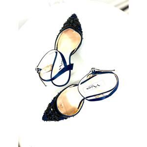 Vintage Navy Nina Heels with black jewels Size 6 Make a glamorous option for a party or cocktail event. These high strappy heels feature navy satin fabric and black jewel accents,and a medium width. The navy and black color make them perfect for special occasions like wedding and are sure to make a statement and elevate any outfit.