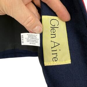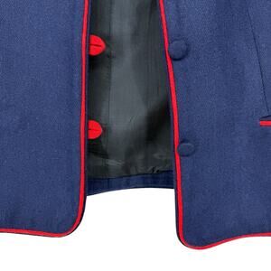 Very good condition, pre-owned, Vintage Navy Red Glen Aire Wool Feel Blazer in Size 9/10. Super cute! Two pockets in the front are faux. There is no material tag, but it feels like a wool blend. Very cool and rare blazer. See all pics and measurements below.