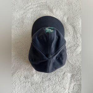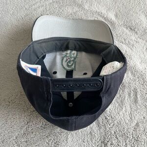 Vintage Navy Seattle Mariner’s Men’s Hat. One size fits all. Made in China. Logo 7. Genuine merchandise MLB. **Some wear on inside lining, seen in pictures** All of hat is navy except the underside of the bill, which is white. Mariner’s S logo on front center is embroidered silver with a navy and turquoise trim. Baseball compass symbol embroidered in white, red, silver, and turquoise thread. Adjustable snap closure in back. Material in front is more stiff and structured; where white material on the inside front two panels. Rest of hat is more loose for a comfortable fit. Women’s, Men’s, Unisex ($30,#146)