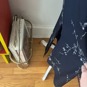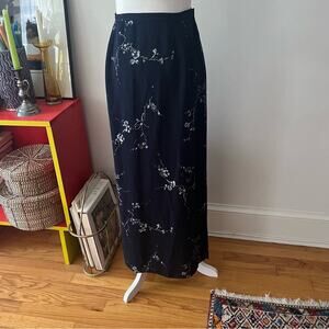 In good preowned condition. Navy silk. Lined. Side slits. Brand is Rena Rowan. Size 10 but fits a modern size 6 IMO (but please see the measurements to ensure best fit).