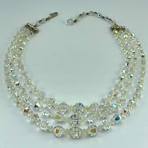 Vintage Necklace 3 Layer Crystal White AB Beaded Elegant Evening Stunning Glitz