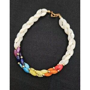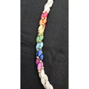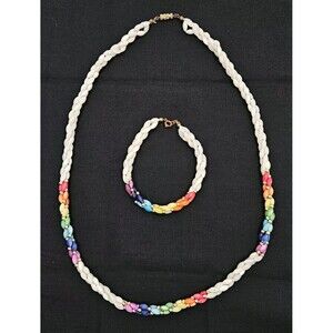 Vintage Necklace & Bracelet Rainbow Mother of Pearl Rice Beads Jewelry Set