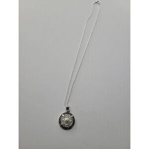 This vintage necklace features a round pendant with arrows and a crystal shield, making it a unique and stylish accessory. The silver color and white main stone add a touch of elegance to the piece, suitable for various occasions such as engagements, weddings, anniversaries, birthdays, and more. The necklace has a lobster closure and measures 21 inches in length, perfect for adding a charm to any outfit with its pendant style and theme of beauty and love.