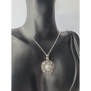 Vintage Necklace Chain Pendant Round Arrows Crystal Shield Jewelry Costume