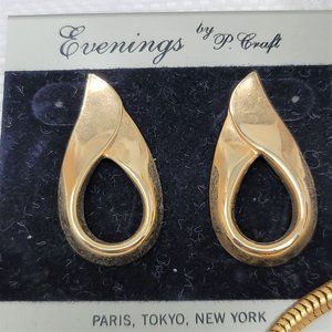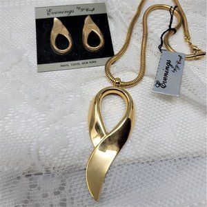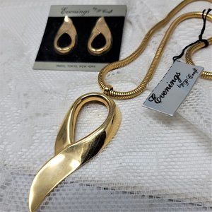 Vintage Necklace & Earring Set Goldtone Pierced Earrings