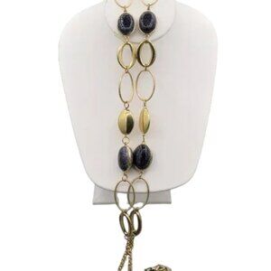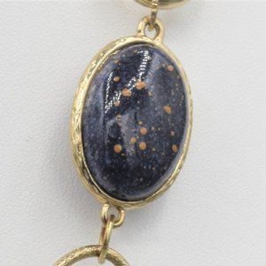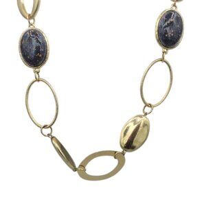 Vintage Necklace Gold Plated Toned & Faux Bloodstone Large Link