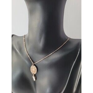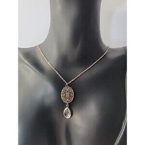Vintage Necklace Gold Tone Chain Pendant Charm Crystal Clear Jewelry Costume