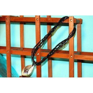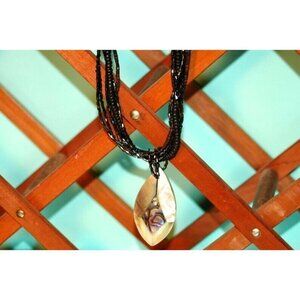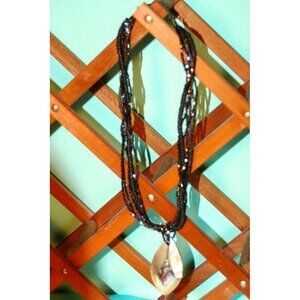 Vintage Necklace Irridescent Seed Beads Multi Strand Oval Pendant Adj Length.