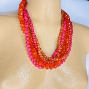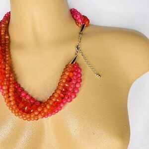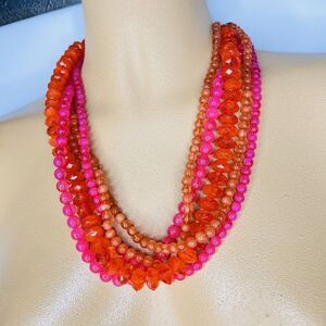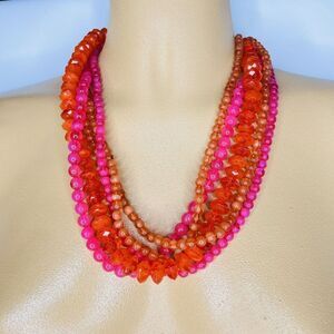Vintage Necklace Mixed Beads Orange Pink Red Multi Strand Beaded Celluloid 4761