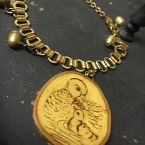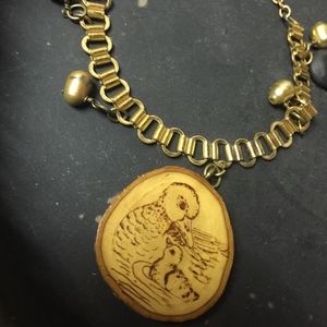 "The Uglly Duckling" This one-of-a-kind vintage necklace represents the classic children's story of a "duck" that didn't fit in.This unique "story piece" is repurposed with a 1960's brass chain adorned with "irregular" fresh water pearls. The 1980's wooden ugly duckling pendant completes the story with the heartfelt ending--this "duck" recognizes it's true identity and realizes it was uniquely beautiful all along. "Why fit In When You Were Born To Stand Out"?