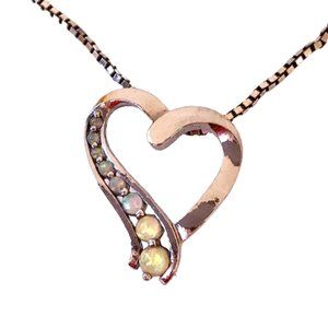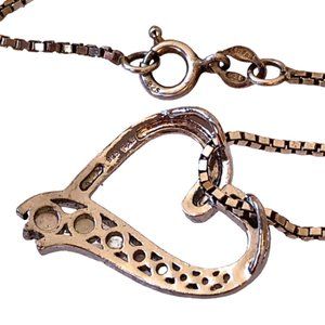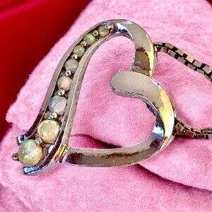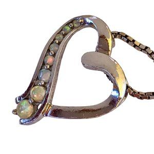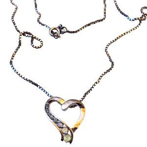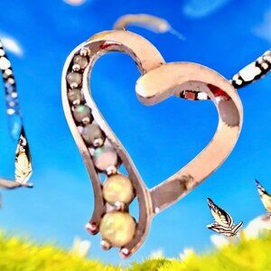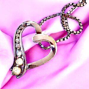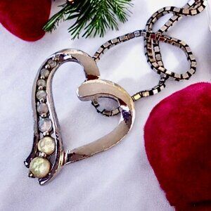 Vintage Necklace Sterling Silver Heart Pendant Aurora Borealis Rhinestone PAS