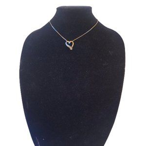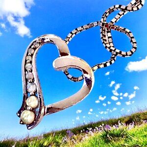 Chain Necklace with PAS sterling silver open heart pendant and Aurora Borealis rhinestones