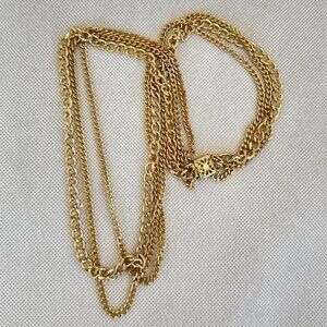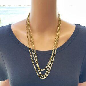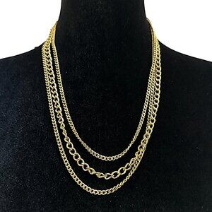 Vintage Necklace Triple Strand Gold Tone Chain Filigree Clasp