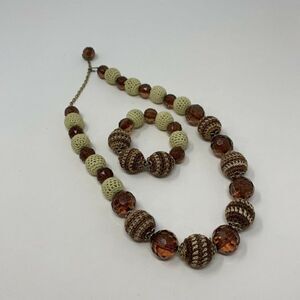 Vintage Necklace Bracelet Set Brown Cream Faceted