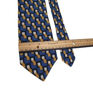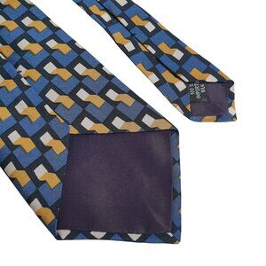This exquisite vintage tie from Ted Lapidus showcases a captivating geometric pattern in blue and gold. Crafted from luxurious 100% silk, this accessory embodies a refined elegance that harks back to a bygone era. A statement piece for the discerning gentleman seeking to add a touch of retro sophistication to his ensemble.