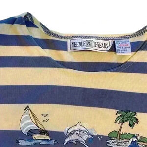 Vintage Needle & Threads Women’s Top Size M Yellow Blue Embroidered Nautical