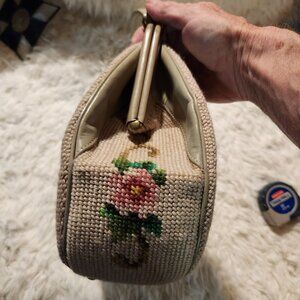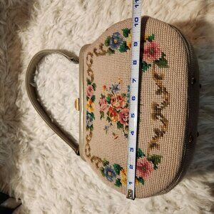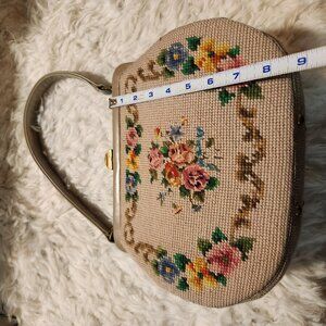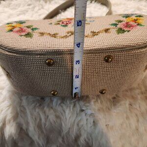 Vintage Needlepoint 7 Petit Point Floral Handbag MCM Cottage Beige Pink & Blue F